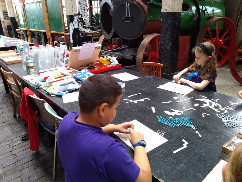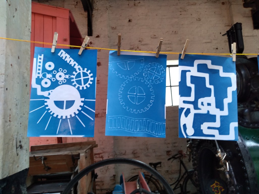 After studying the drawings, the group collected their own array of shapes and objects, to create an alternative ‘blueprint’; a cyanotype.