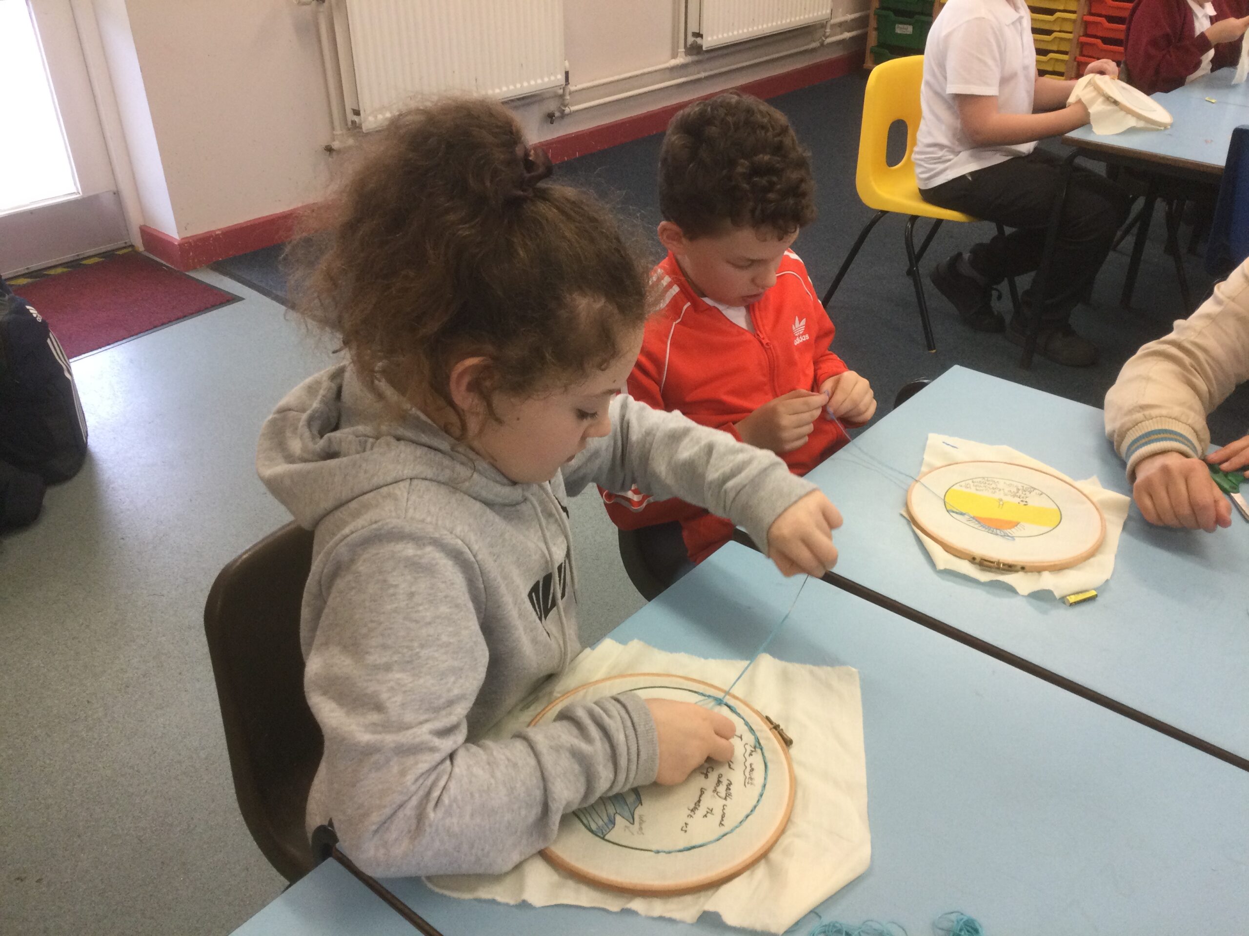 Over at Pakefield in the afternoon, the children were excited to be ‘doing some more sewing’.