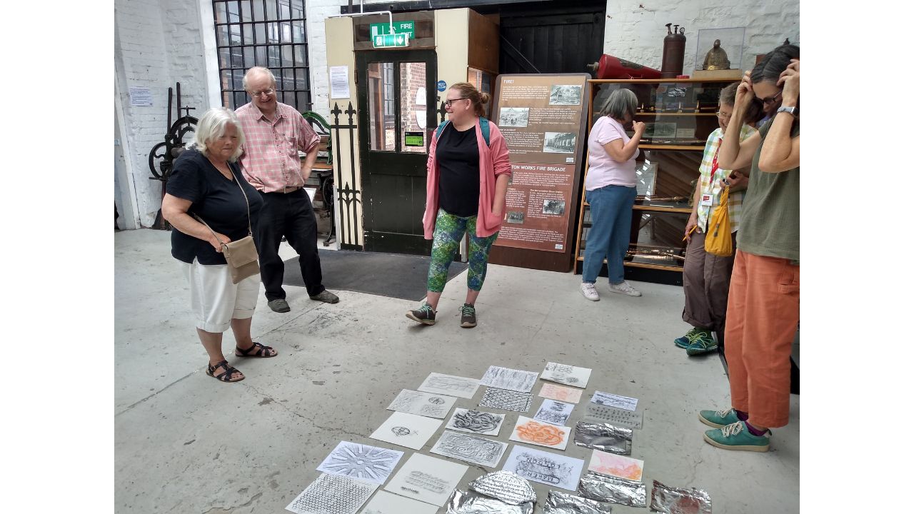 This week, we were joined by a group of adults, some of whom had never previously visited the Museum. After a brief introduction by Jo they were soon roaming around the Long Shop in search of different patterns and marks to create rubbings.