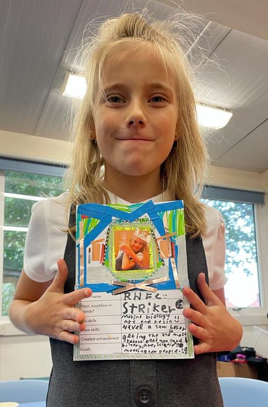 Through the creation of personalised Player’s Cards, the children got to consider the skills and goals they bring to the project; they also got to discover a little bit about each other as, coming from different classes within the year group, some of them were meeting for almost the first time.