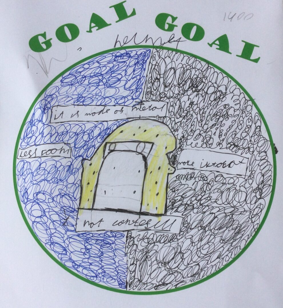 The residents were similarly impressed by the children’s work, and soon the room was buzzing with conversations that ranged from really uncomfortable helmets to hand-stitched wedding dresses and ammonites.