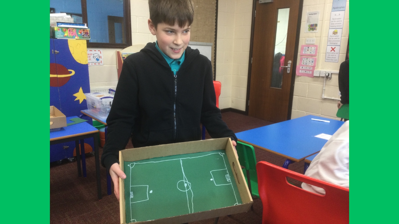 They folded their boxes into pitches, turned the remaining paper upside down and used it as the turf, carefully applying white lines.