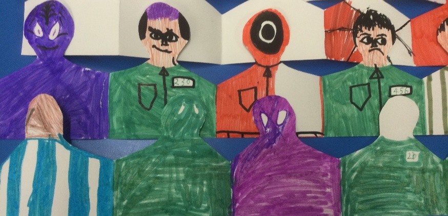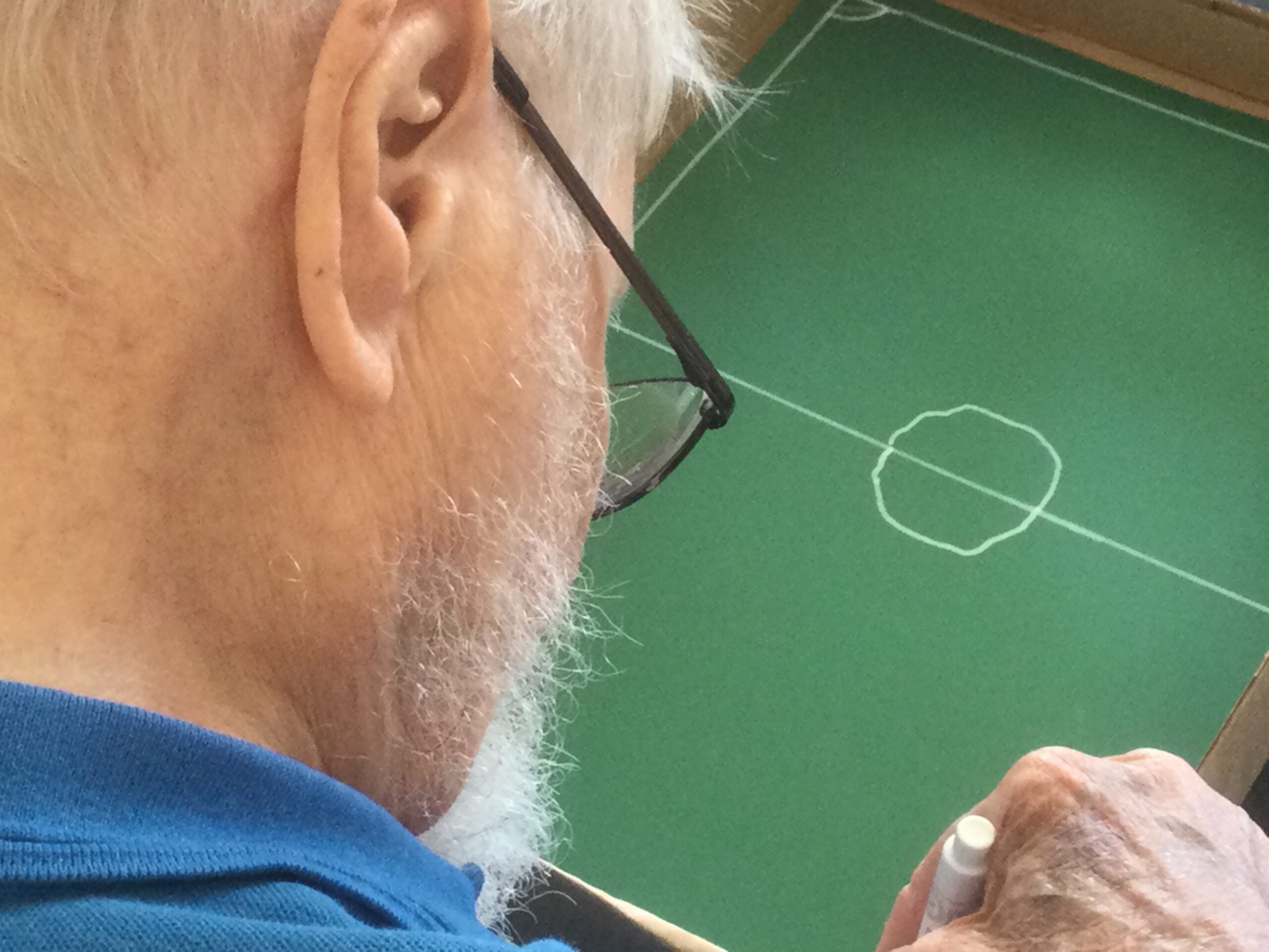 The children played pen football to some well-known football theme tunes, after which they selected their favourite piece of the ‘game’, cut it out and stuck it onto a postcard.