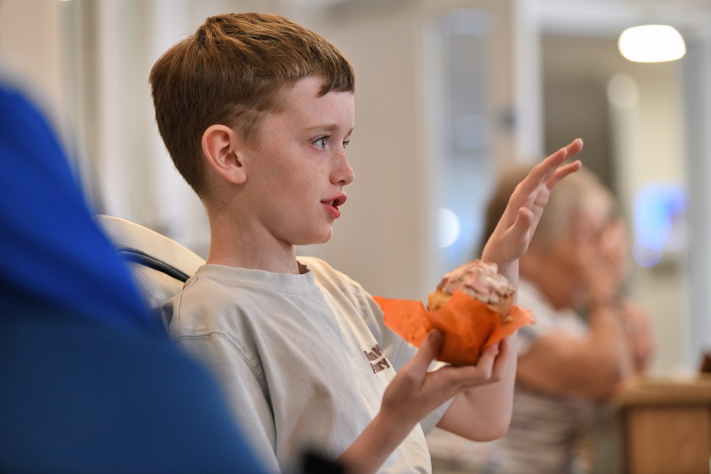 Our final session—and the children get to visit the residents at Britten Court, share some of the work they’ve created over the last ten weeks, and enjoy possibly the biggest cupcake they’ve ever seen.