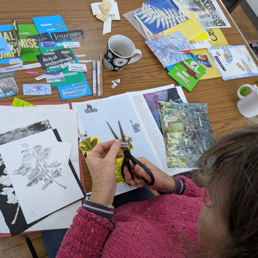 Sessions will be held on Zoom and delivered by artists Jac Campbell and Lynn Whitehead in these supportive and welcoming sessions to explore your creativity. Together we will experiment with collage, print making, book making and creative ways with words.