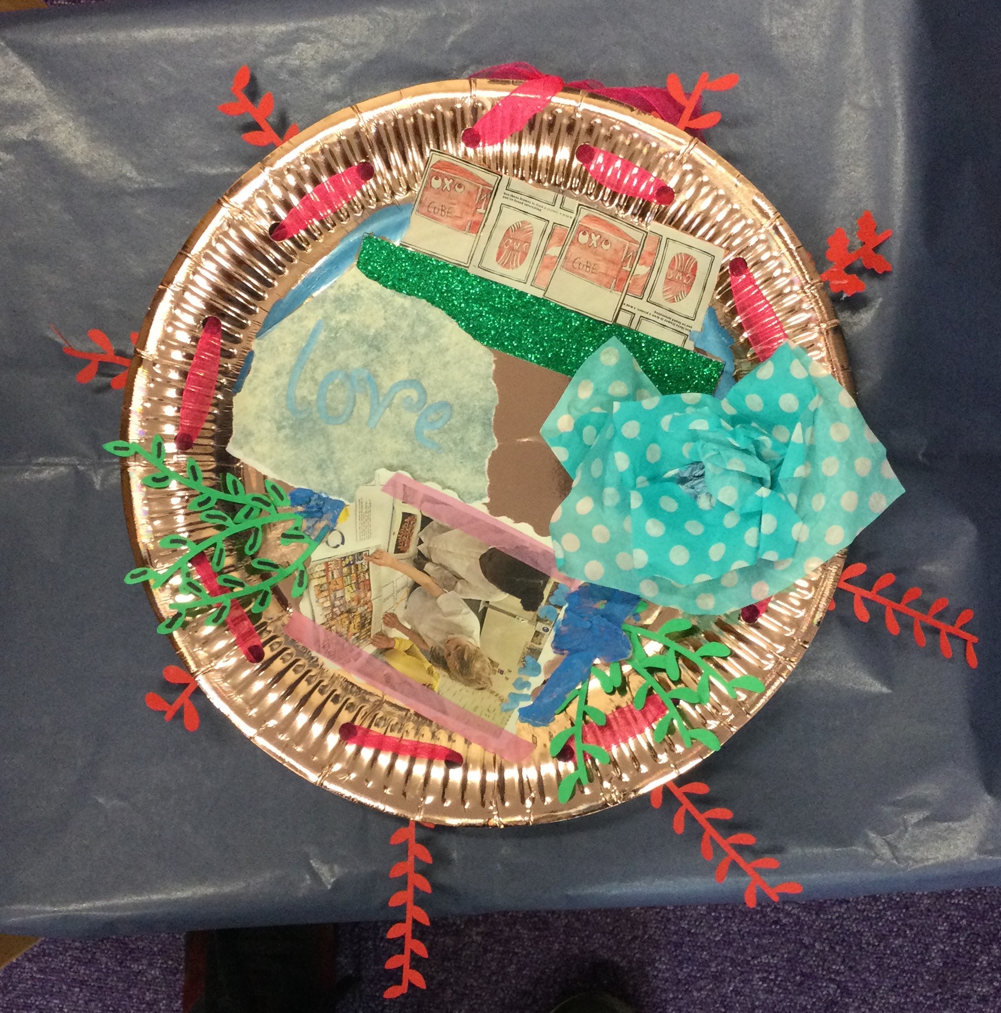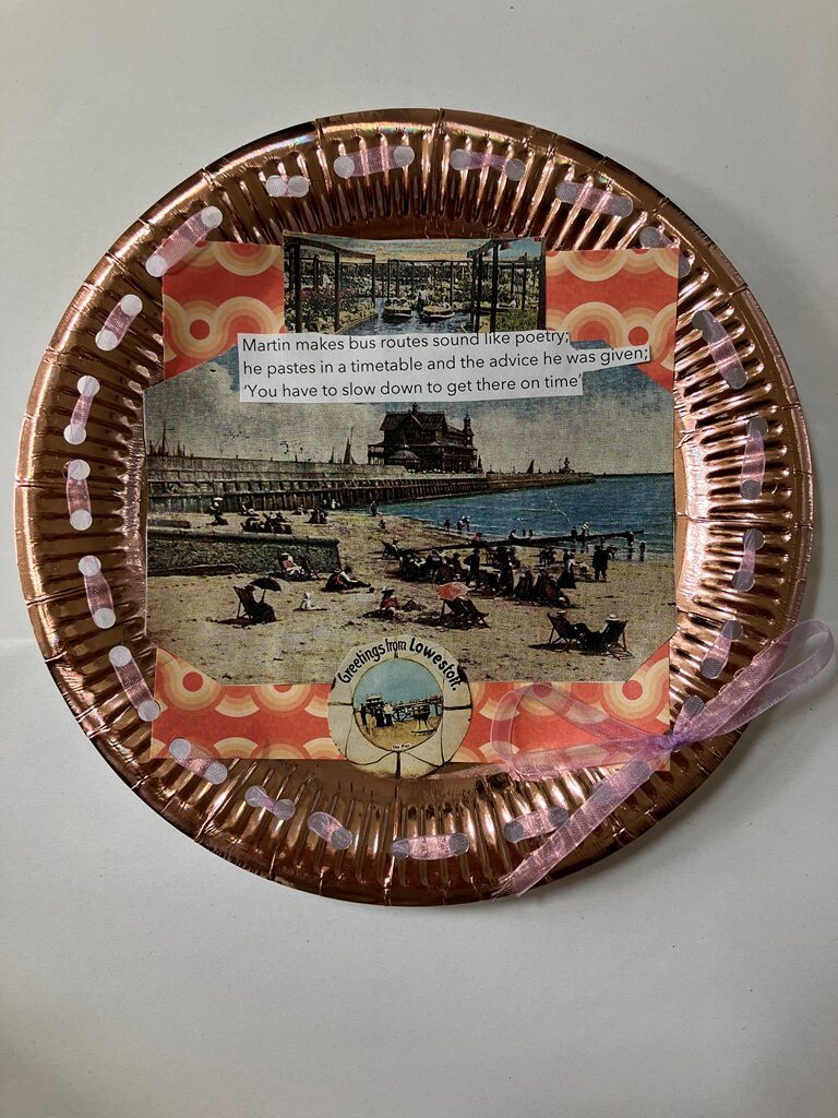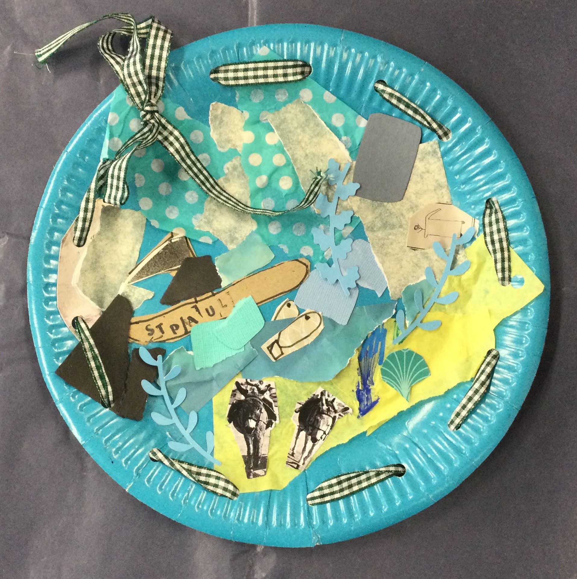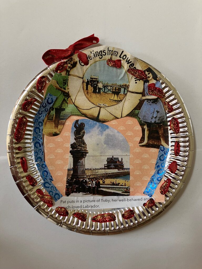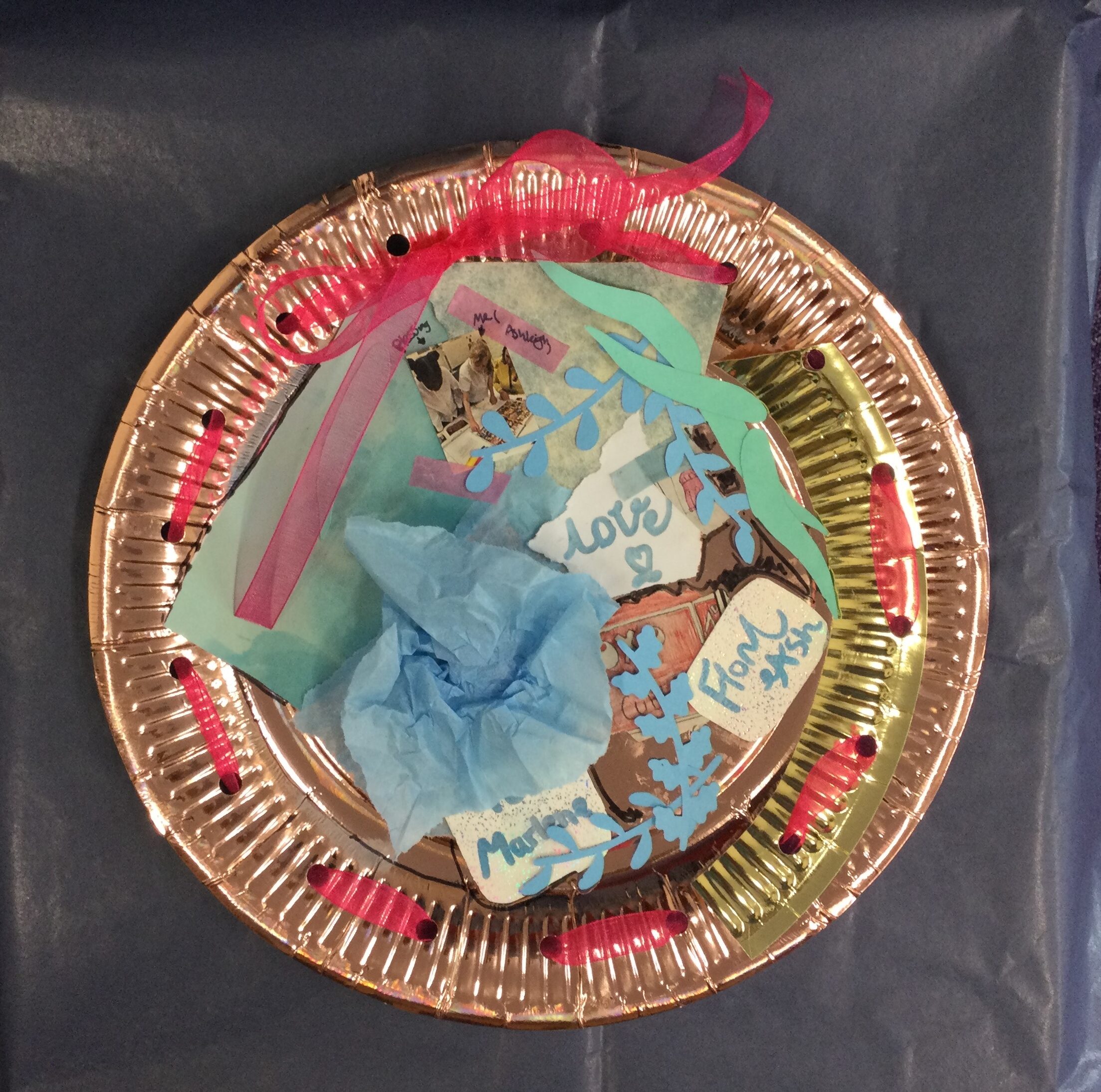 residents. They used their drawings and images to collage these delightful ‘souvenir plates’, to share some of those discoveries with the adults.