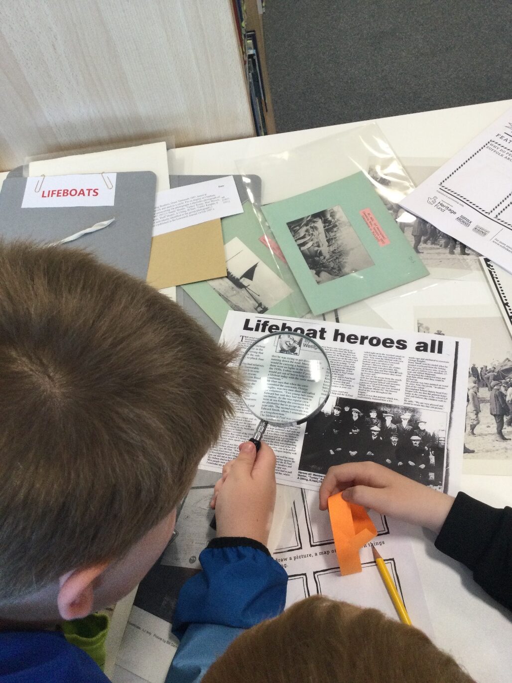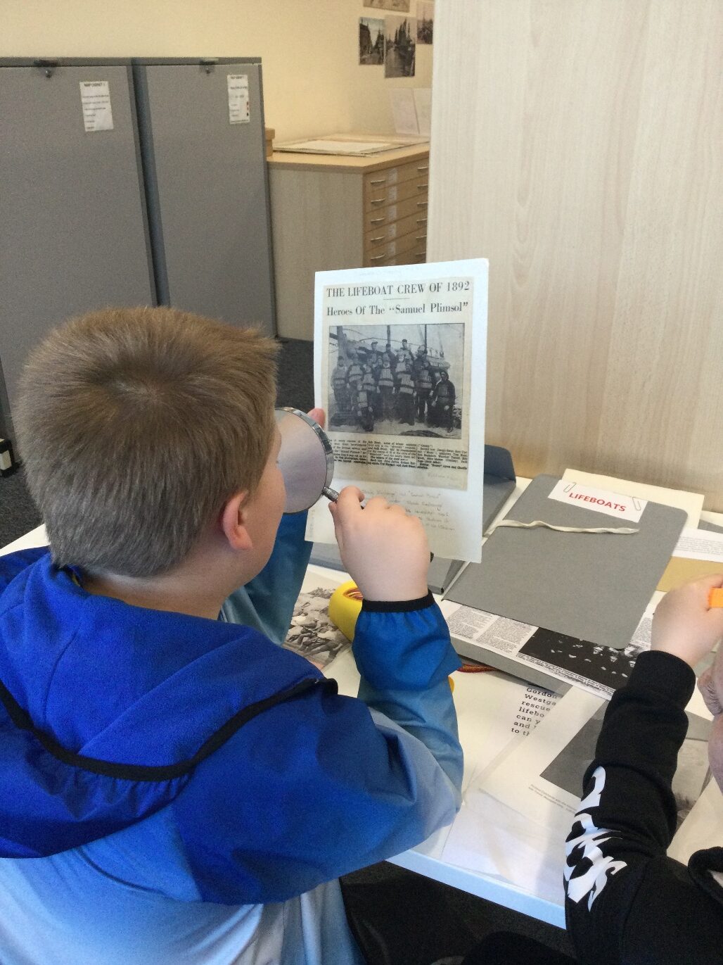 Whilst at Suffolk Archives, some of the children had the chance to research the story, and found photographs and press cuttings about the crew and the rescue.