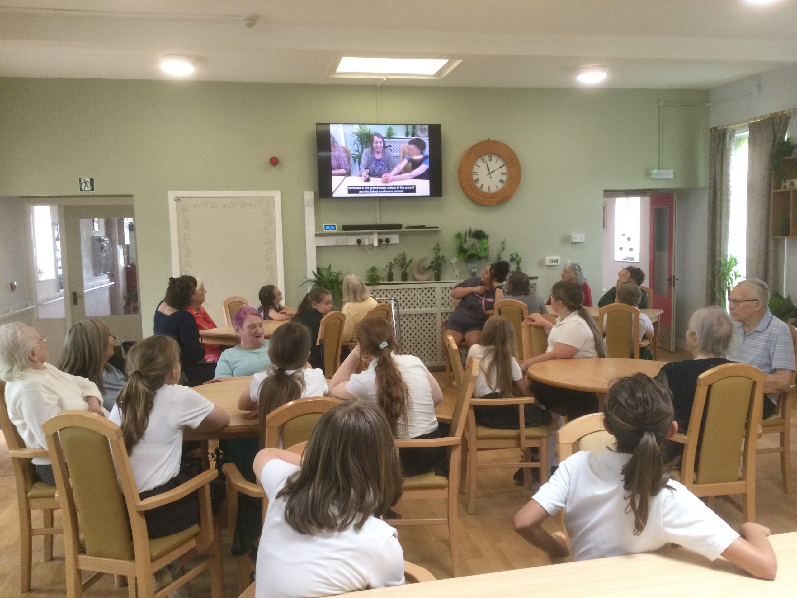 The children were surprised—and delighted—by the variety of ‘trophies’ awarded to the Beech House Bakers in Dean’s poem, and the residents were clearly very happy and pleased to be able to share the video and see themselves again on screen.