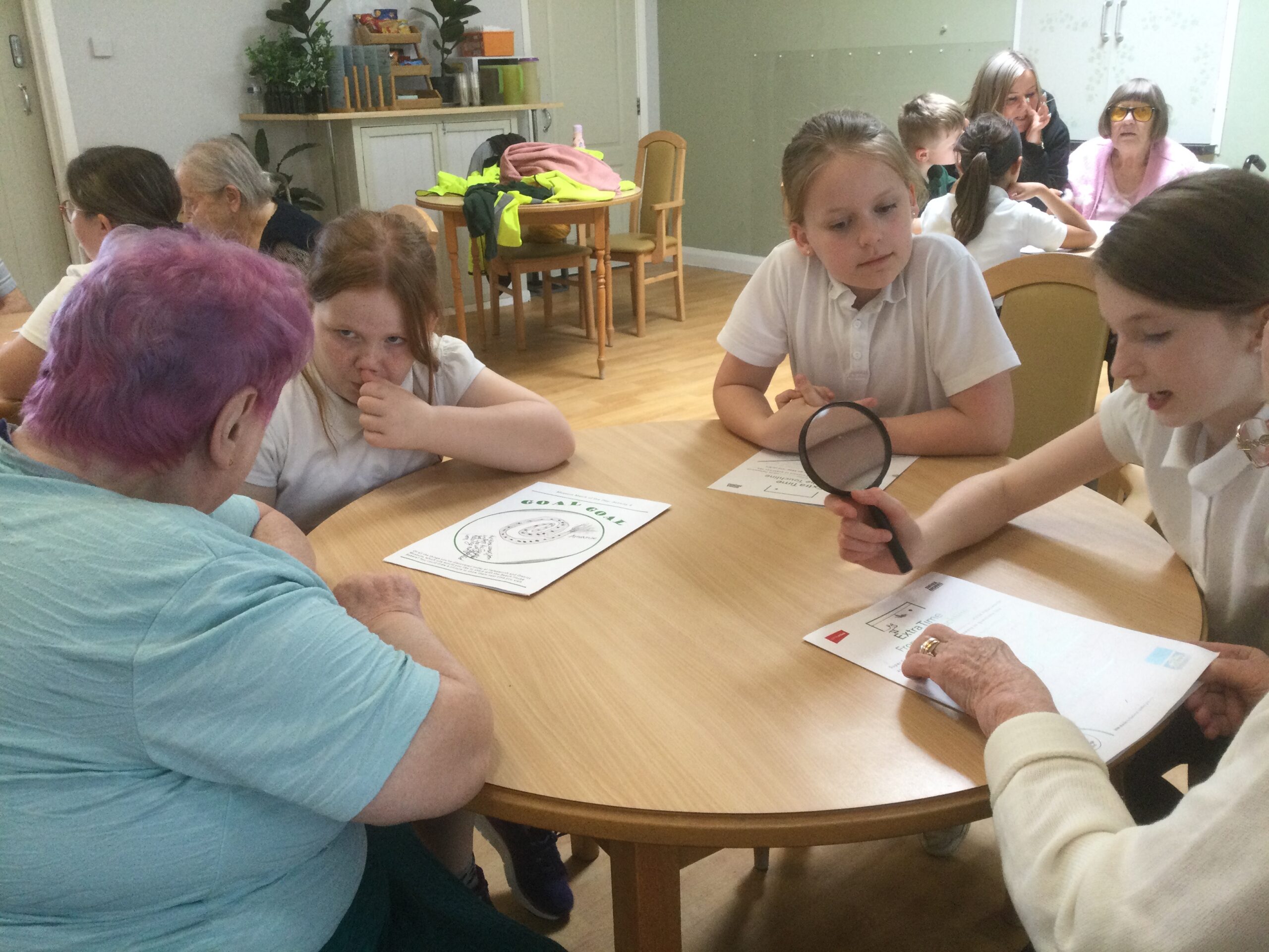 The children chatted busily about their drawings and what they’d written, whilst the residents looked on admiringly.